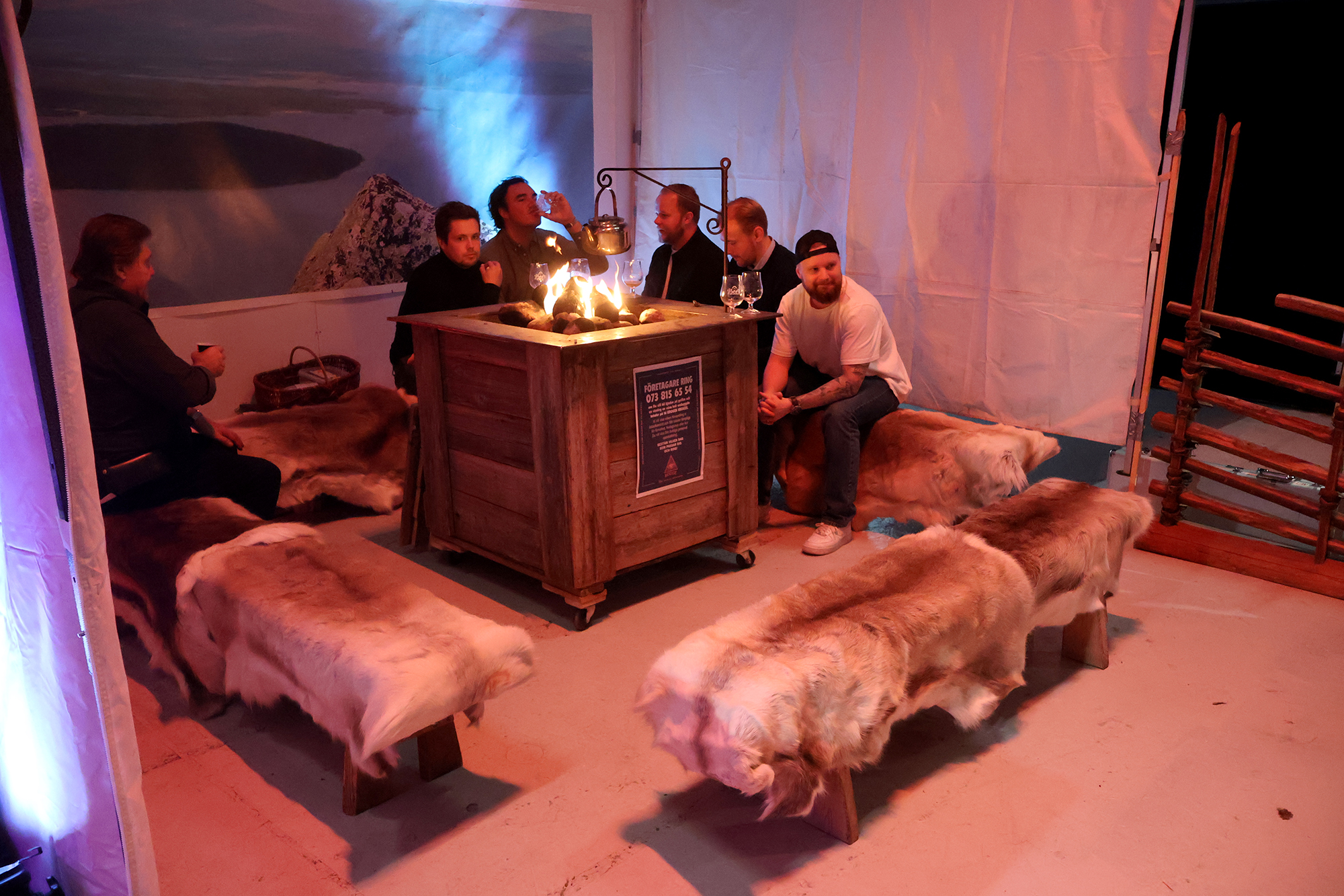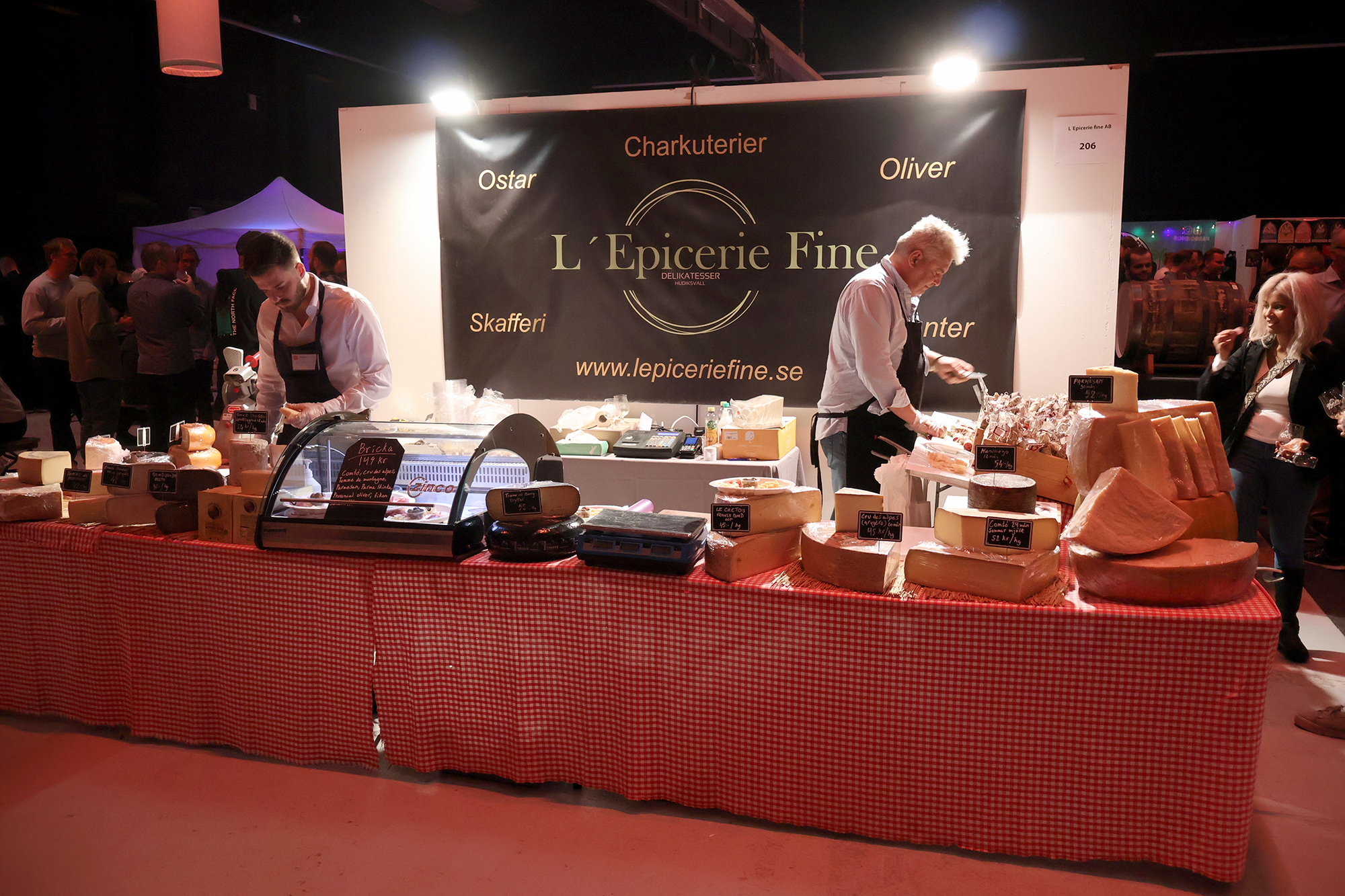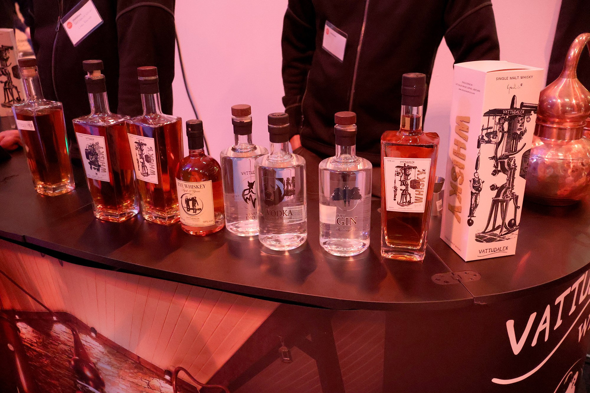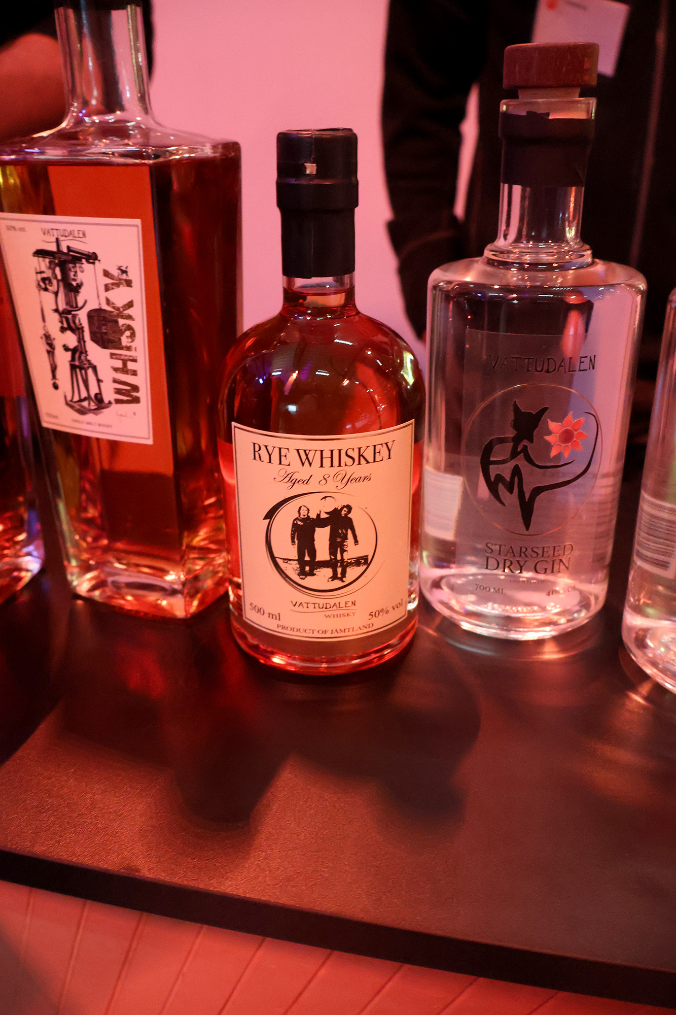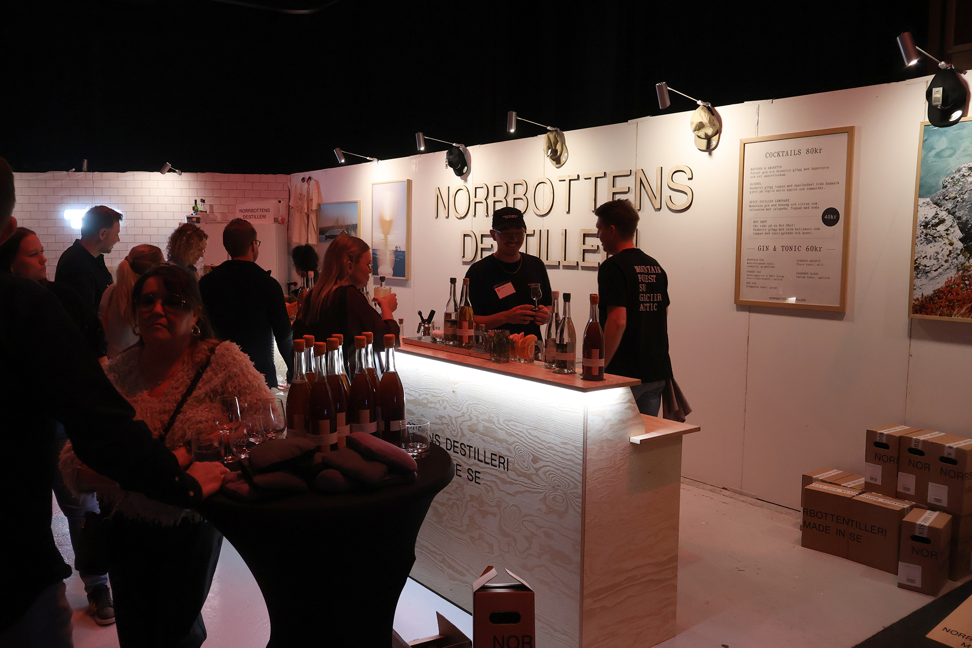 Heti tapahtumasalin sisäänkäynnin vasemmalla puolella näin RomRobbanin seisovan kojullaan ja koska kojulla ei vielä ollut porukkaa, astelin esiin, esittäydyin (ruotsiksi tietenkin) ja rupattelin tovin mukavia Robbanin kanssa rommista ja kaikenlaisesta tähän yhteiseen harrastukseemme liittyvästä. Tai no, hänellehän rommi on ammatti. Tämän jälkeen siirryimme seuraavalle kojulle, jossa seisoi Emil Åreng. Myönnän, että tässä vaiheessa koin jotain, jota en ole aiemmin elämässäni oikeastaan kokenut. Tunne on englanniksi nimeltään star struck ja se tarkoittaa sitä tilannetta, kun tapaat henkilön (tähden) jota fanitat ja huomaat sen vaikuttavan itseesi siten, että sekoilet melkein sanoissasi ja olet hieman hämilläsi. Menin kuitenkin esittäytymään ja sain juteltua Emilinkin kanssa hyvän tovin (edelleen ruotsiksi) ennen kuin tajusin päästää hänet takaisin työnsä pariin. Hän tarjoili ja valmisti kojullaan voileipäkakkuannoksia, joita hänen johtama baari/ravintola Facit myös tarjoilee ja joista on kuuluisa. Hänellä oli kojulla kolme työntekijää valmistamassa drinkkejä.