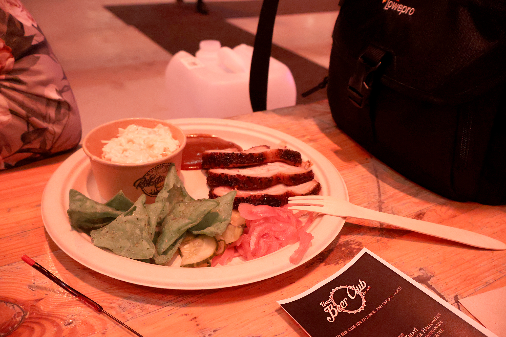 Perjantaina klo 15:00 paikallista aikaa avautuivat ovet tämän vuoden Beer & Taste -tapahtumaan Umeån Nolia-nimisessä messukeskuksessa. Me olimme paikalla kello 16 hauskan taksikuskin kuljettamana (sama taksikuski vei meidät takaisinkin myöhemmin). Lipputarkistuksen jälkeen edessä oli myyntikoju, jossa myytiin 10 ja 20 kruunun drinkkilippuja 10 kappaleen nipuissa. Drinkkiliput olivat ainoa käytössä oleva valuutta tapahtuman sisällä. Käteisellä tai kortilla pystyi maksamaan ainoastaan ruokakojuilla. Koska en etukäteen tiennyt yhtään paljonko drinkit tai maistiaiset sisällä maksaisivat (pieni miinus järjestäjille), ostin varovaisesti yhden nipun 20 SEK kuponkeja (200 SEK = 18€), mutta sisäänpääsyn jälkeen huomasin saaneeni kaksi nippua yhden hinnalla. Tämän jälkeen eteen avautui pitkä pöytä notkollaan erilaisista juomalaseista, joista jokainen sai ottaa itselleen omansa, jolla sitten olisi tarkoitus maistella kaikki mitä aikoi maistella illan aikana. Salissa oli kaksi vesipistettä lasien huuhtelua varten.