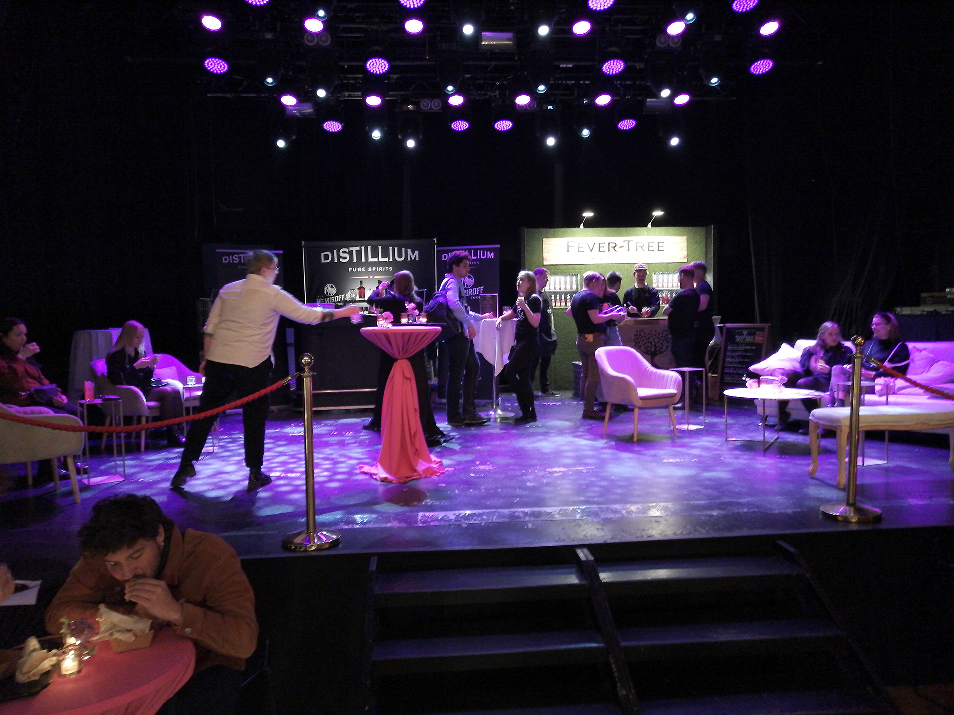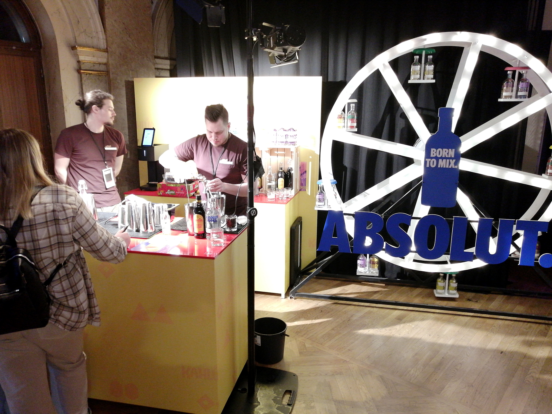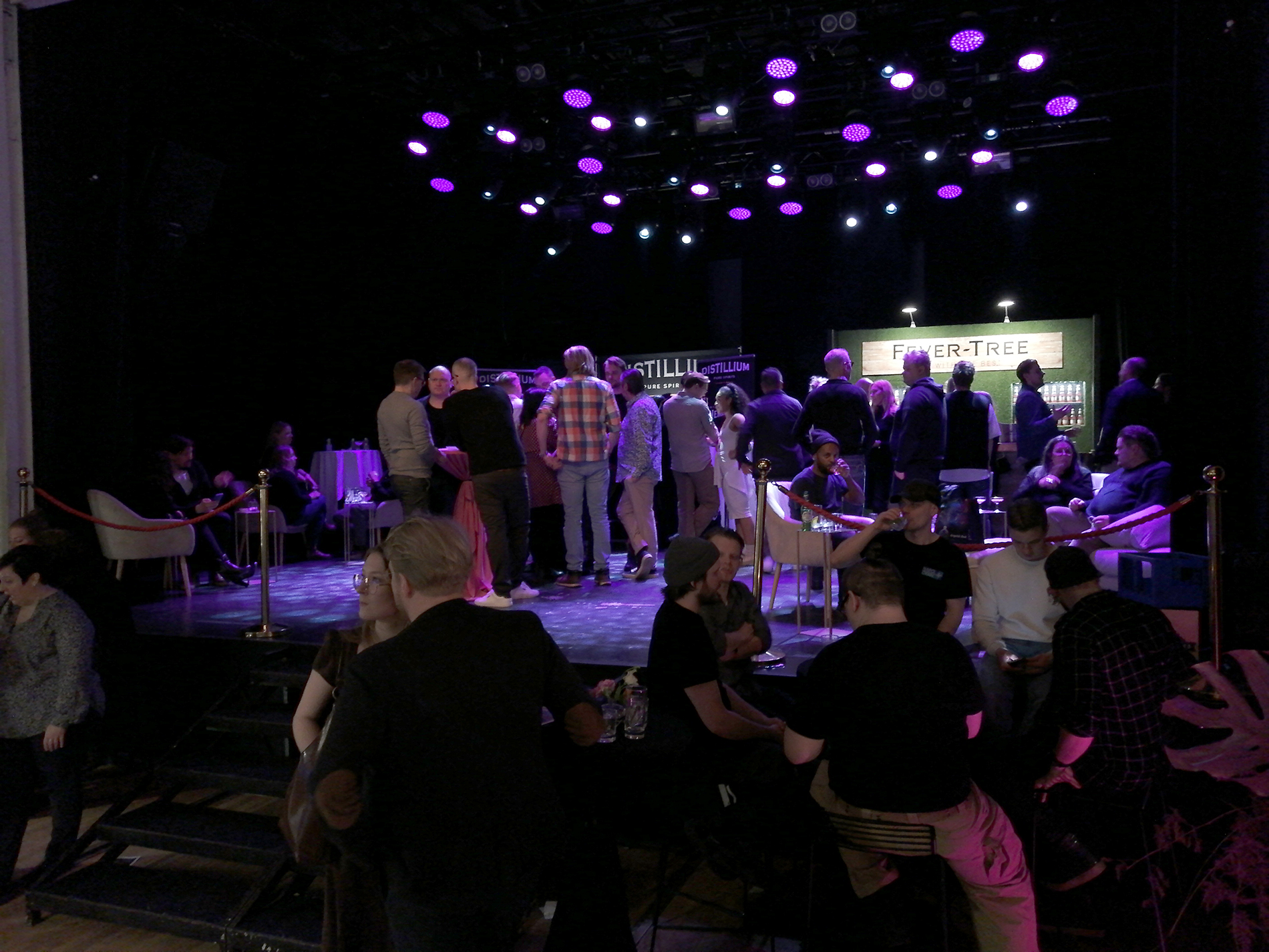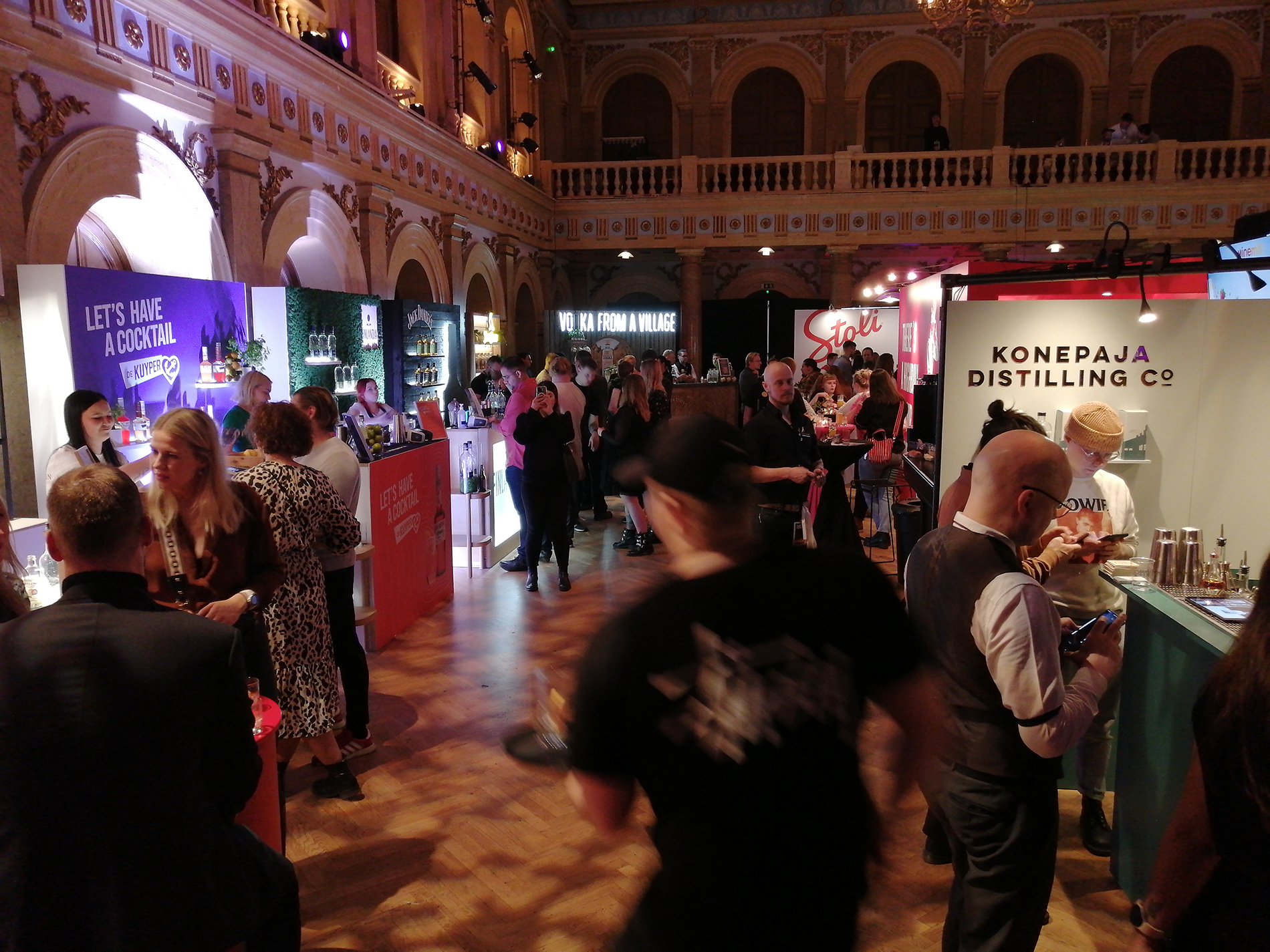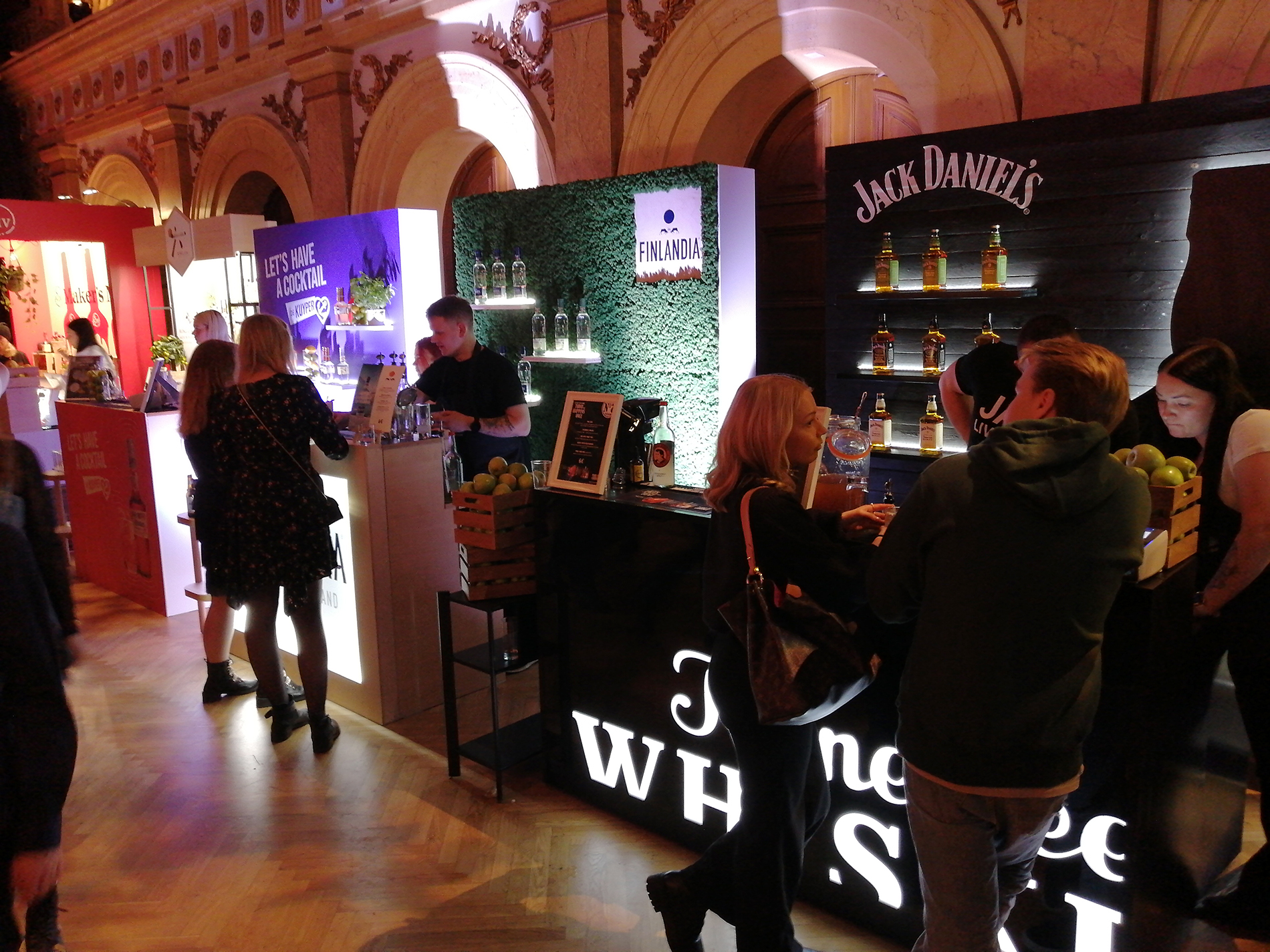 Tapahtuma koostui kaiken kaikkiaan 34 ständistä, joista suurimmalla osalla viinojen tai miedompien alkoholien maahantuojat tai valmistajat esittelivät tuotteitaan. Miedompia alkoholeja esiteltiin tosin vain viidellä ständillä, väkeviä 14:llä. Heidän lisäksi näytteilleasettajissa oli seitsemän helsinkiläistä (?) cocktail-baaria, pari alkoholittomia viinankorvikkeita esittelevää yritystä, viinanlaimennuskoneen valmistaja, lantrinkifirma, kahvifirma, pari ruokakojua ruokavähemmistöille ja valmisdrinkkejä hanasta -firma. Lisätietoa näistä selviää selaamalla kuvagalleriaa jäljempänä.