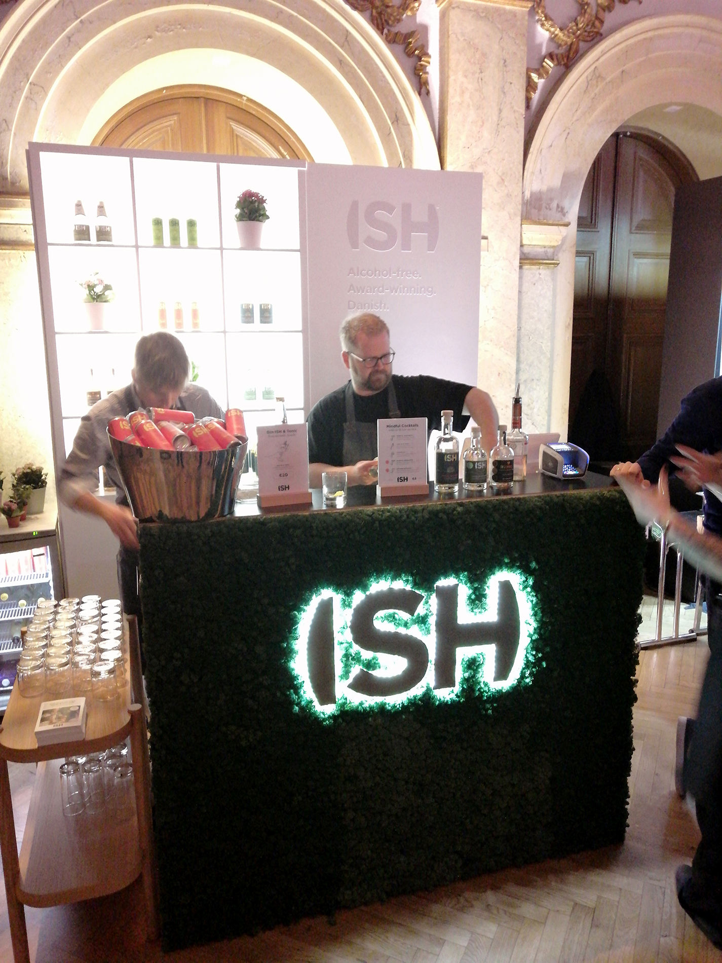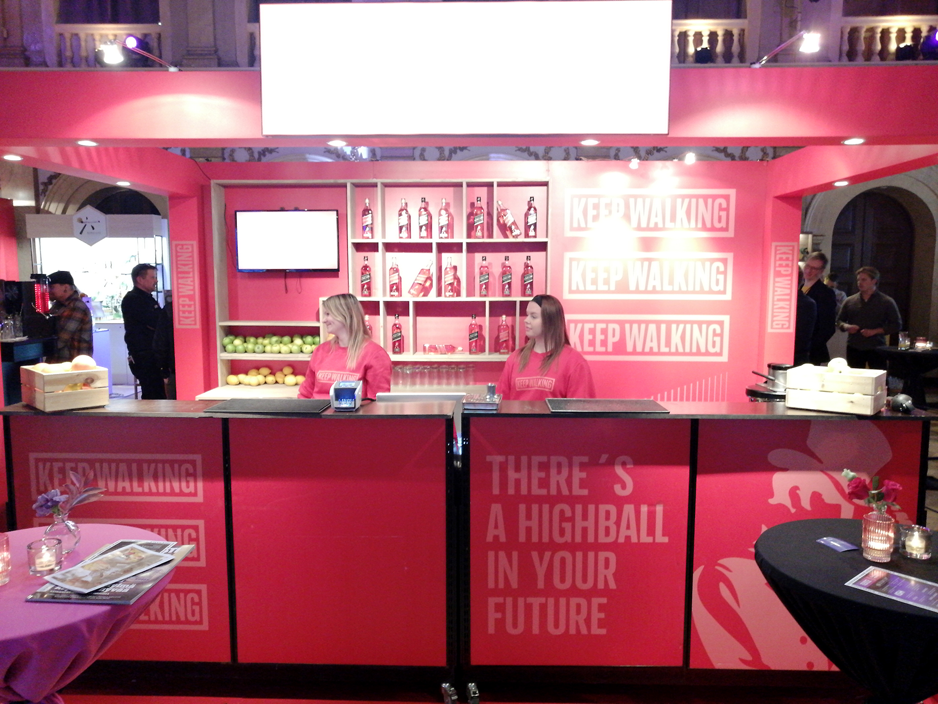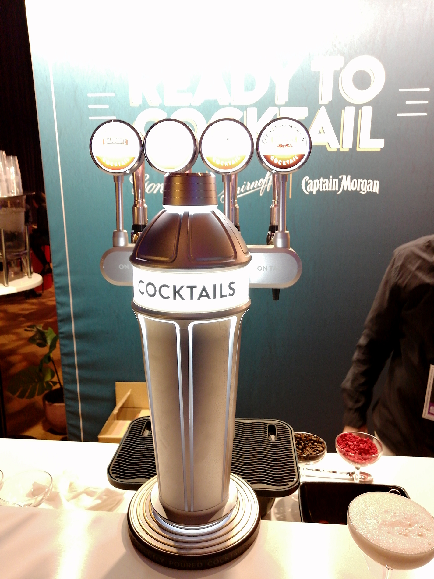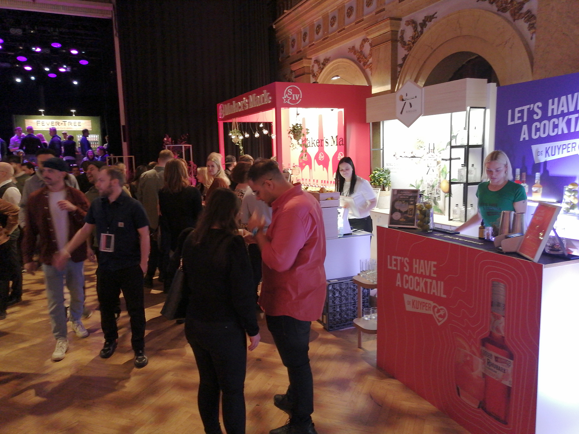 Tapahtuma koostui kaiken kaikkiaan 34 ständistä, joista suurimmalla osalla viinojen tai miedompien alkoholien maahantuojat tai valmistajat esittelivät tuotteitaan. Miedompia alkoholeja esiteltiin tosin vain viidellä ständillä, väkeviä 14:llä. Heidän lisäksi näytteilleasettajissa oli seitsemän helsinkiläistä (?) cocktail-baaria, pari alkoholittomia viinankorvikkeita esittelevää yritystä, viinanlaimennuskoneen valmistaja, lantrinkifirma, kahvifirma, pari ruokakojua ruokavähemmistöille ja valmisdrinkkejä hanasta -firma. Lisätietoa näistä selviää selaamalla kuvagalleriaa jäljempänä.