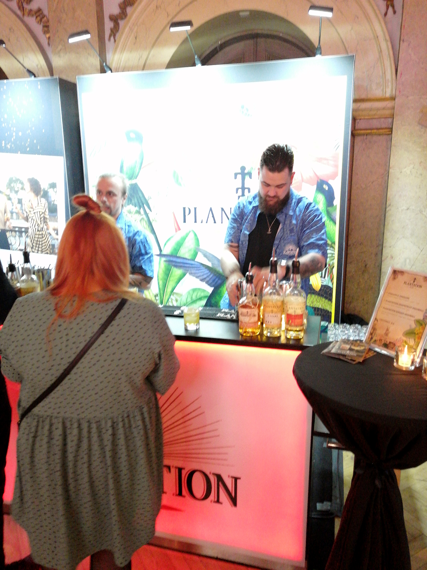 Tässä Plantation-rommin kojulla kävin illan parhaan keskustelun mm. Alkon pas*asta verkkokaupasta, rommeista, siitä sun tästä... Keskustelun toisena osapuolena oli parrakas herra oikealla. Hyvä tyyppi, hyvä rommi.