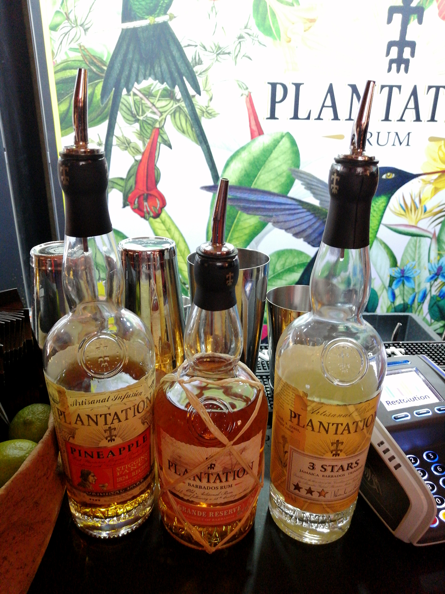 Plantation-rommit olivat merkkinä ennestään tuttuja (kaapissa 4 eri sorttia) ja ananasrommista tehty Daiquiri oli aivan täydellisyyttä hipova, vaikka oli illan eka drinkki!