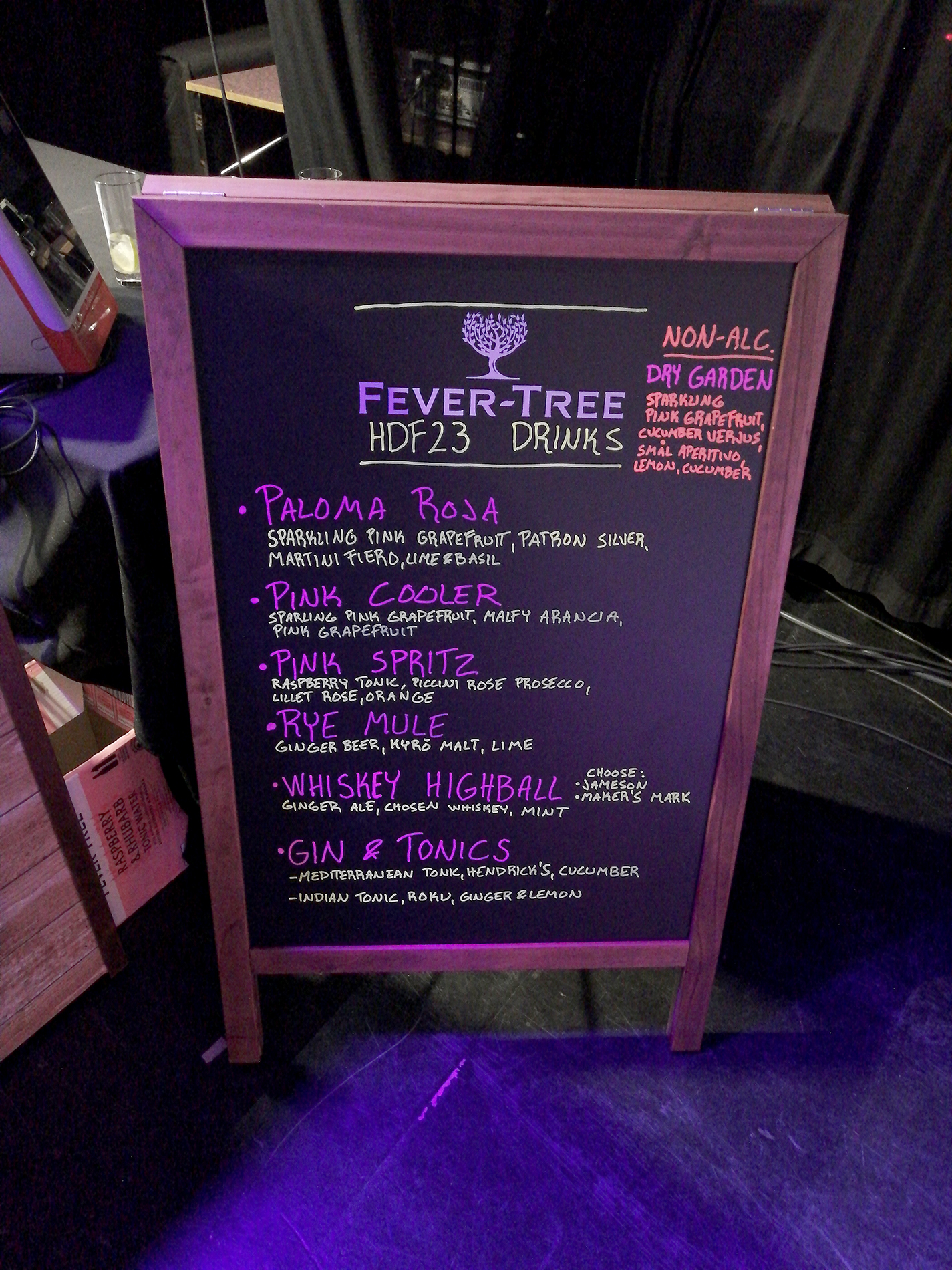 Fever Tree -mixereiden kojun festarimenyy.