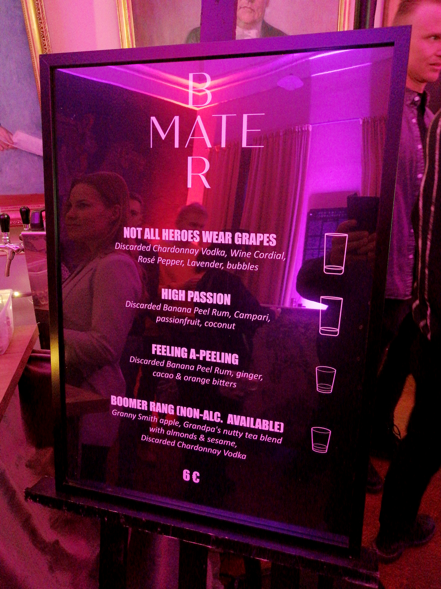 Bar Maten festarimenyy. High Passion ei oikeasti sisältänyt Camparia, se oli menyyvirhe, mutta se oli kenties koko tapahtuman maistuvin cocktail!