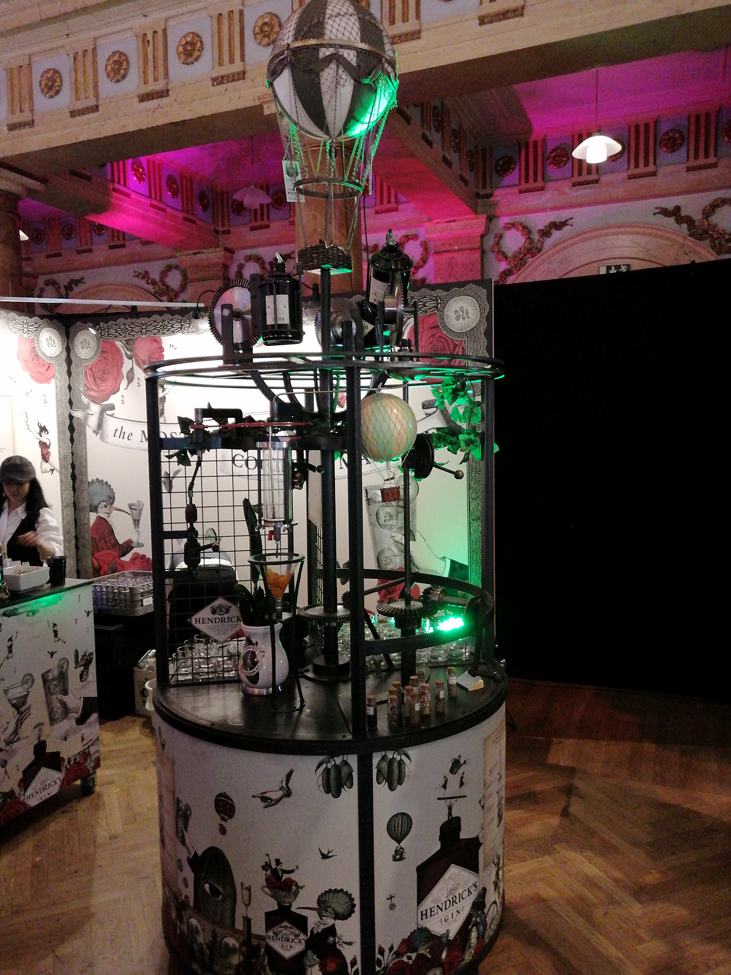 Hendrick's Gin oli tuonut paikalle... aikakoneen? Oikeasti se oli monimutkainen vempele, joka kaatoi drinkin lasiin moninkertaisessa ajassa ihmiseen verrattuna.