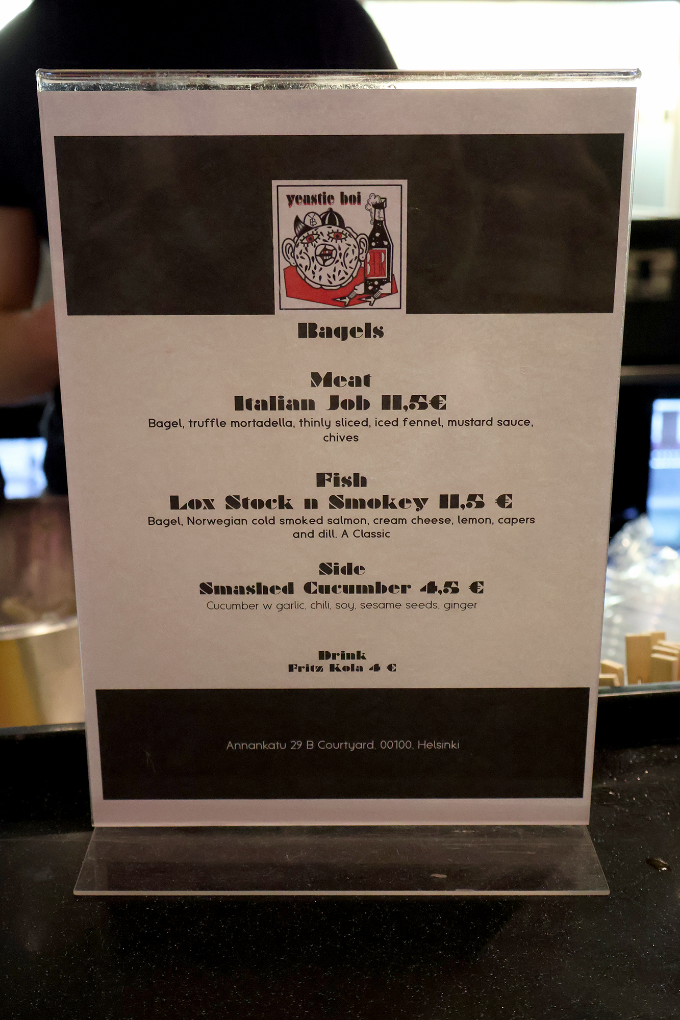 Ruokatarjoilu on mielestäni ollut aiemmin tapahtuman heikoin lenkki. Tänä vuonna, kuten viime syksyn HDF Whiskey Editionissakin ruokatarjoilusta vastasivat yhdessä Yeastie Boi ja Lumme Catering. Ensin mainittu möi täytettyjä bageleita, joita tänä vuonna oli tarjolla lihaversiona ja kalaversiona. Lihaversio oli minusta vallan ok (söin sen kokonaan), mutta vaimolla syöminen loppui puoliväliin johtuen varmaan hieman erikoisemmista mauista ja ainesosista. Lumme Cateringin tarjonta jäi hieman vaille huomiota osaltani, mutta siellä taisi olla samankaltaista hipsterihodaria tarjolla kuin syksyn viskifestareilla. Parannusta on kuitenkin tapahtunut ruokapuolella viimevuotiseen verrattuna.