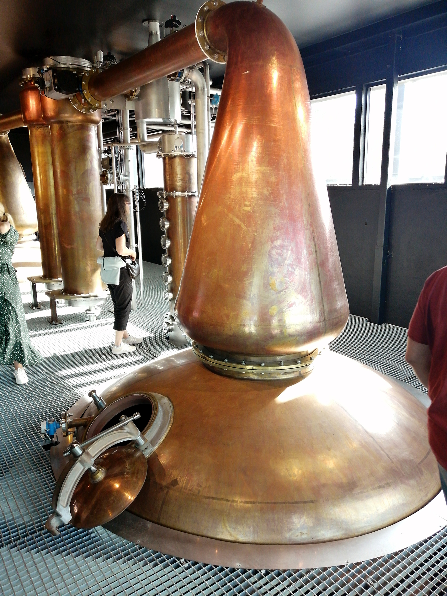 Tämä oli se informaatio yrityksen historiasta ja toiminnasta mikä minulla jäi mieleen. Omaan makuun hieman liian pitkäkestoisen alkuinfon (seisaaltaan, useampi kävelypäivä maamme pääkaupungissa jo takana) jälkeen päästiin kiertämään ensin viski- ja sitten ginitislaamon puolella. Ginitislaamon puolella ei kuitenkaan saanut kuvata, kuulemma räjähdysvaaran vuoksi. Ginin valmistuksessa alkoholia leijailee kuulemma ilmassakin. Hieman selitys oudoksutti, kun kännyköitä ei kuitenkaan käsketty esimerkiksi sammuttaa, mutta niillä ei vaan saanut kuvata. Ei ainakaan minun kännykän salama enää syty savuisiin liekkeihin kuten 1800-luvun lopulla. No, siitä osiosta siis ei ole kuvia.
